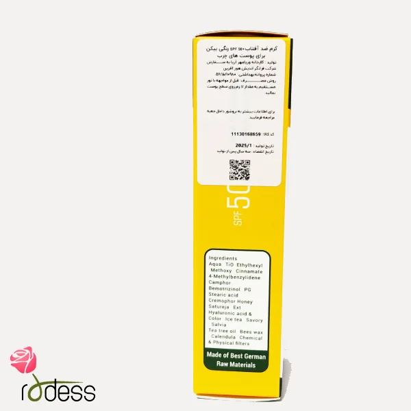 ضد آفتاب SPF50 رنگی بیکن شماره 2+ مخصوص پوست های خشک 50 میل