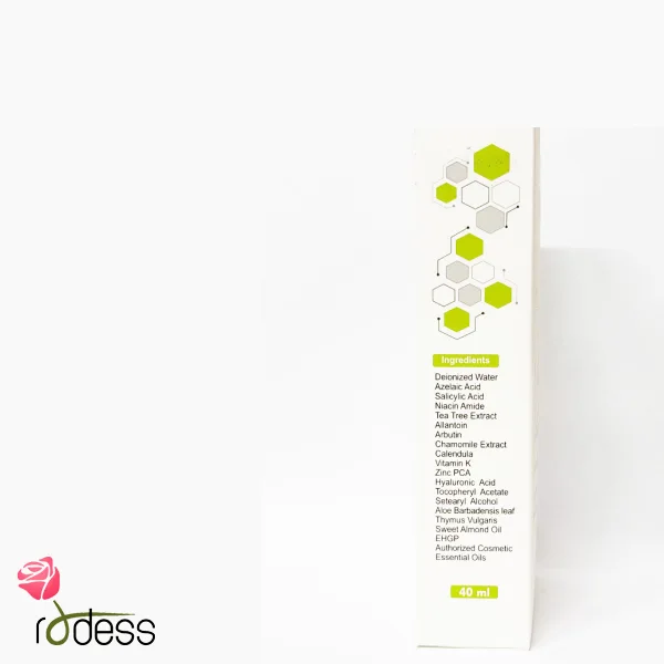 در این محصول از مواد تاثیر گذاری استفاده شده است که شامل آزلائیک اسید، سالیسیلیک اسید، روغن درخت چای، آربوتین، هیالورونیک اسید، عصاره آلوورا و روغن بادام شیرین می شود. این محصول با این ترکیبات می تواند به غیر از جلوگیری از جوش زدن پوست به رفع لک های ناشی از جوش بپردازد و همچنین گودی های جدید و قدیمی ایجاد شده ناشی از جای جوش را از بین ببرد.