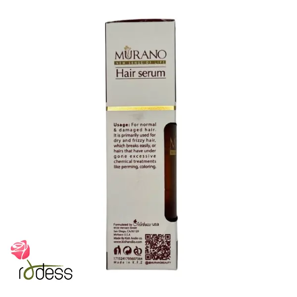 سرم مو مورانو MURANO یک حالت دهنده و براق کننده مو می باشد که در درمان مو های آسیب دیده و نازک شده و همچنین جلوگیری از وز شدن مو موثر می باشد. سرم مو مورانو از موادی مانند سیلیکون ها،دایمتیکون و کراتین تشکیل شده است که باعث تقویت مو می شود. سیلیکون موجود در سرم مو مورانو باعث به وجود آمدن نتایج شگفت انگیزی مانند نرمی، درخشندگی و خوش حالتی برای موها خواهد شد. سرم مو مورانو ضد وز MURANO با ایجاد لایهای درخشان از مواد مغذی و سیلیکونی موها را خوش حالت میکند. با مصرف این سرم مو، موهایتان با لایهای از مواد سیلیکونی و حفاظتی پوشیده میشود و بدین ترتیب موها صاف، نرم و ابریشمی خواهند شد.